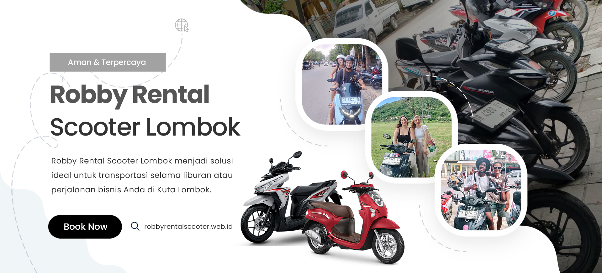 Robby Rental Scooter Lombok hadir sebagai pilihan terpercaya bagi Anda yang membutuhkan kendaraan praktis, nyaman, dan terjangkau selama berada di Kuta Lombok. Dengan pengalaman dalam melayani wisatawan lokal maupun mancanegara, kami berkomitmen memberikan pelayanan terbaik serta menyediakan unit motor yang selalu dalam kondisi prima dan siap digunakan kapan saja. Kami memahami bahwa mobilitas yang mudah, cepat, dan fleksibel akan membuat perjalanan Anda semakin menyenangkan.